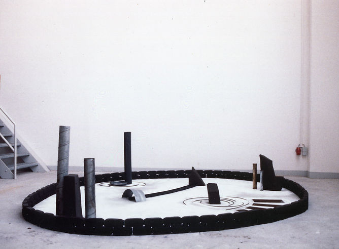 Charred Berlin, Industrial scrap landscape, while desolate and sweetened, circled by an intense carbon black line ... draws the urban landscape of West Berlin. (Note extracted from the workbook, Berlin, March, 1986).